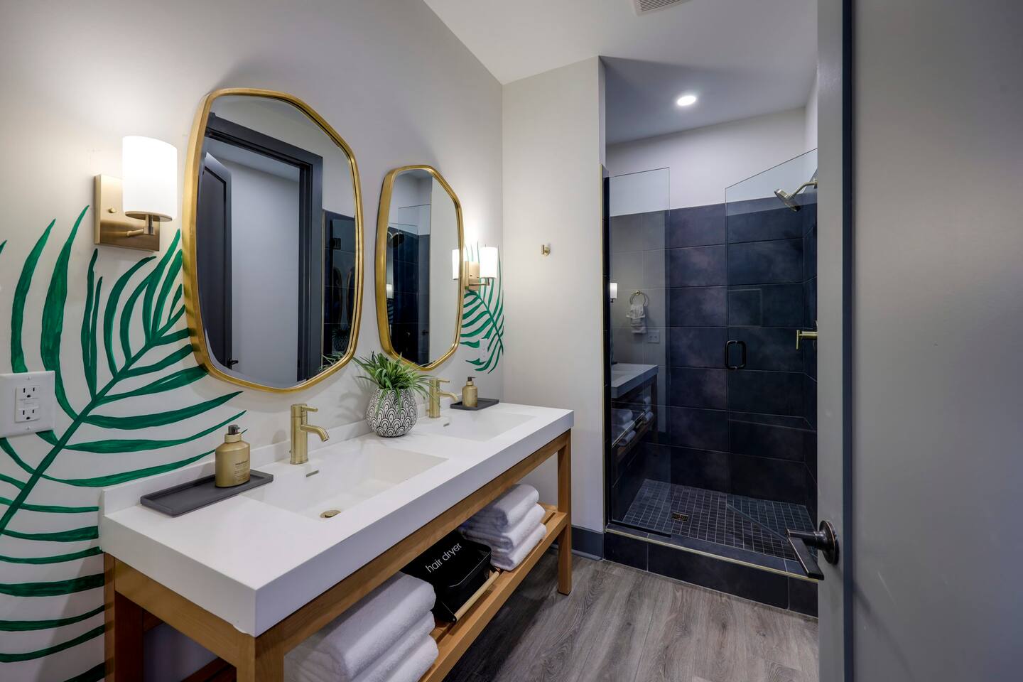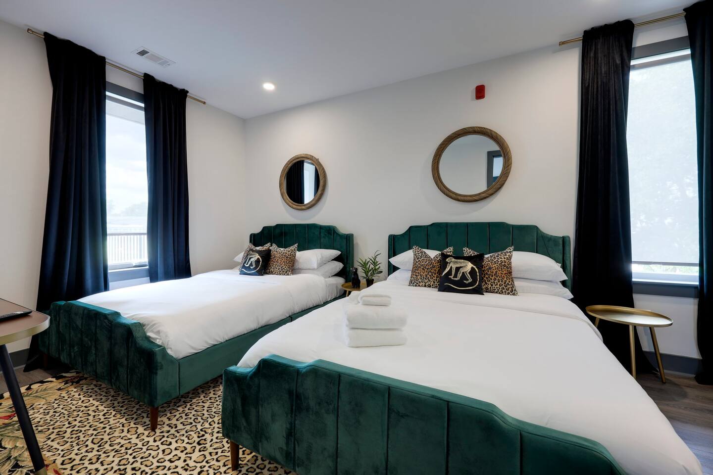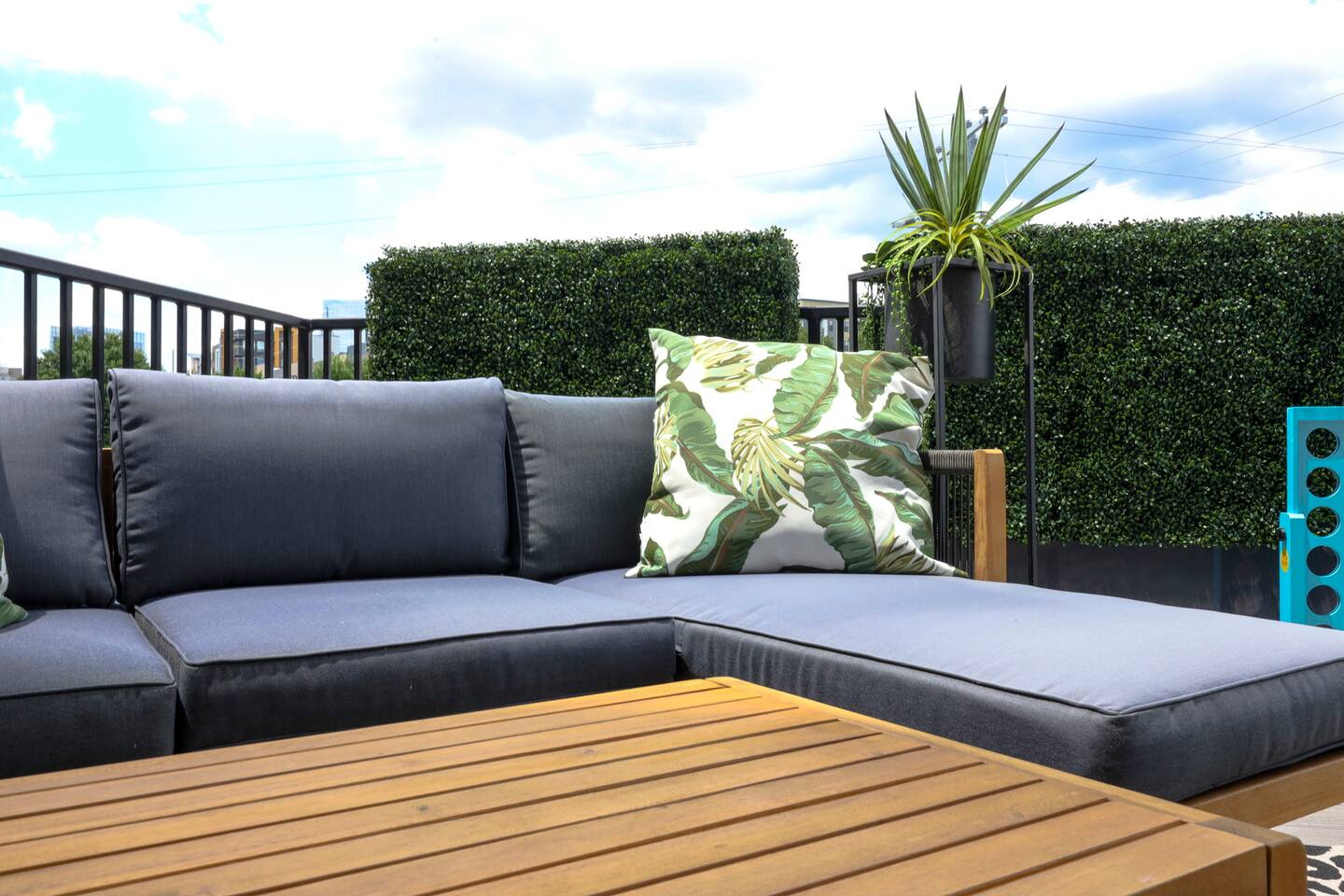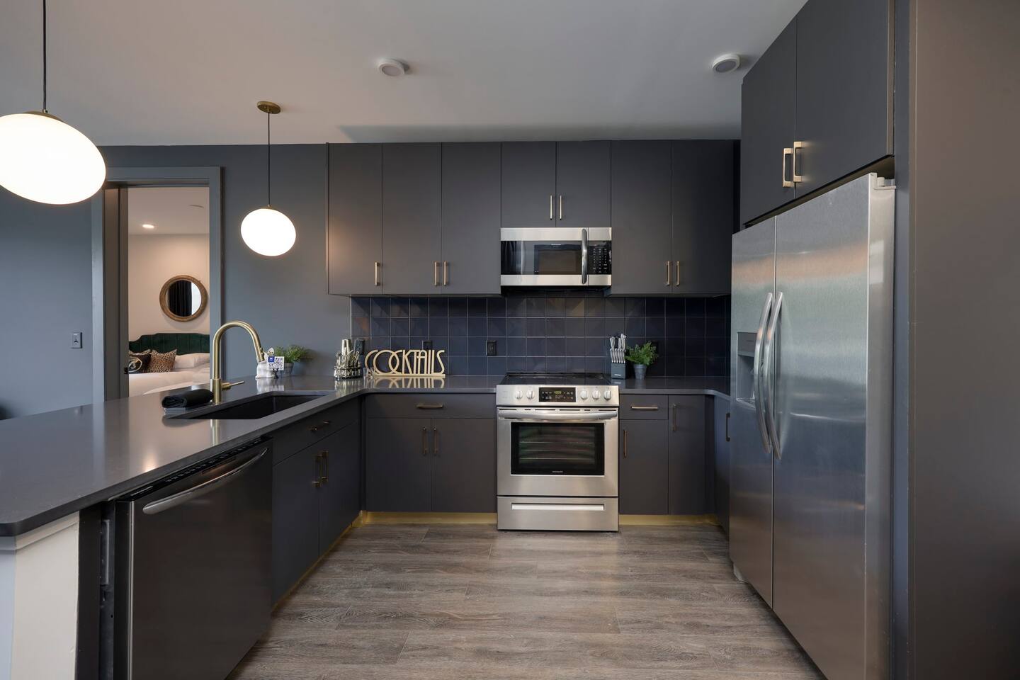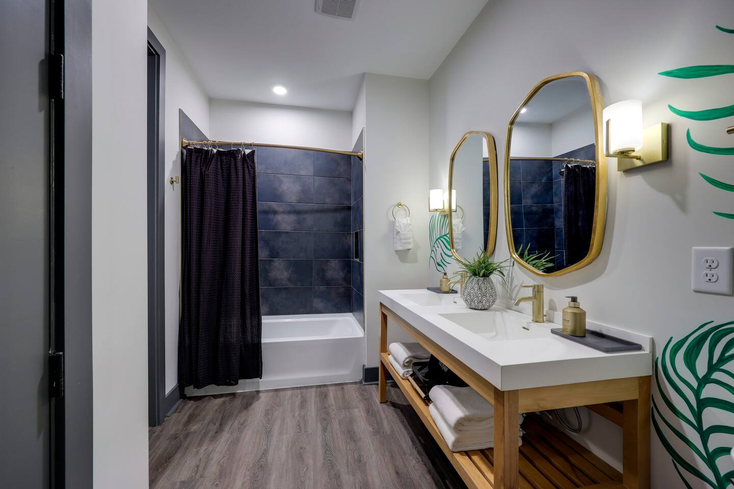Nashvilleurbanretreats presents this spacious 2 bed 2 bath, which was designed by Nashville's best designer. Sliding doors lead to the largest outdoor deck with grill in this elevator building. The deck has a curated space for outdoor dining and entertainment with a few fun outdoor games to loosen up before heading out to downtown Nashville, which is a 15-20 min walk. Have some fun posing in front of a mural done by one of our favorite Nashville muralists as well as the cool neon angel wings.